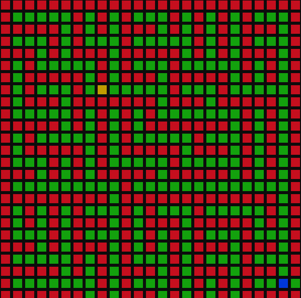 아래 그림에서 초록색을 길, 빨간색을 벽으로 생각하면, 모든 초록색 빨간색 POS를 각각 정점으로 생각할 수 있고, 초록색이 연속으로 있으면 인접(간선이 연결 되어있다.)라고 말하고 초록색과 빨간색이 붙어있으면 초록색 노드와 빨간색 노드는 인접해 있지 않은것이다.