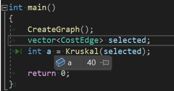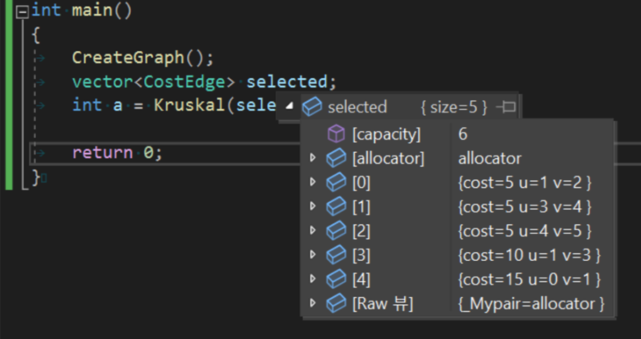반환 값 ret 이 전체 간선 최소 비용을 알려준다.
