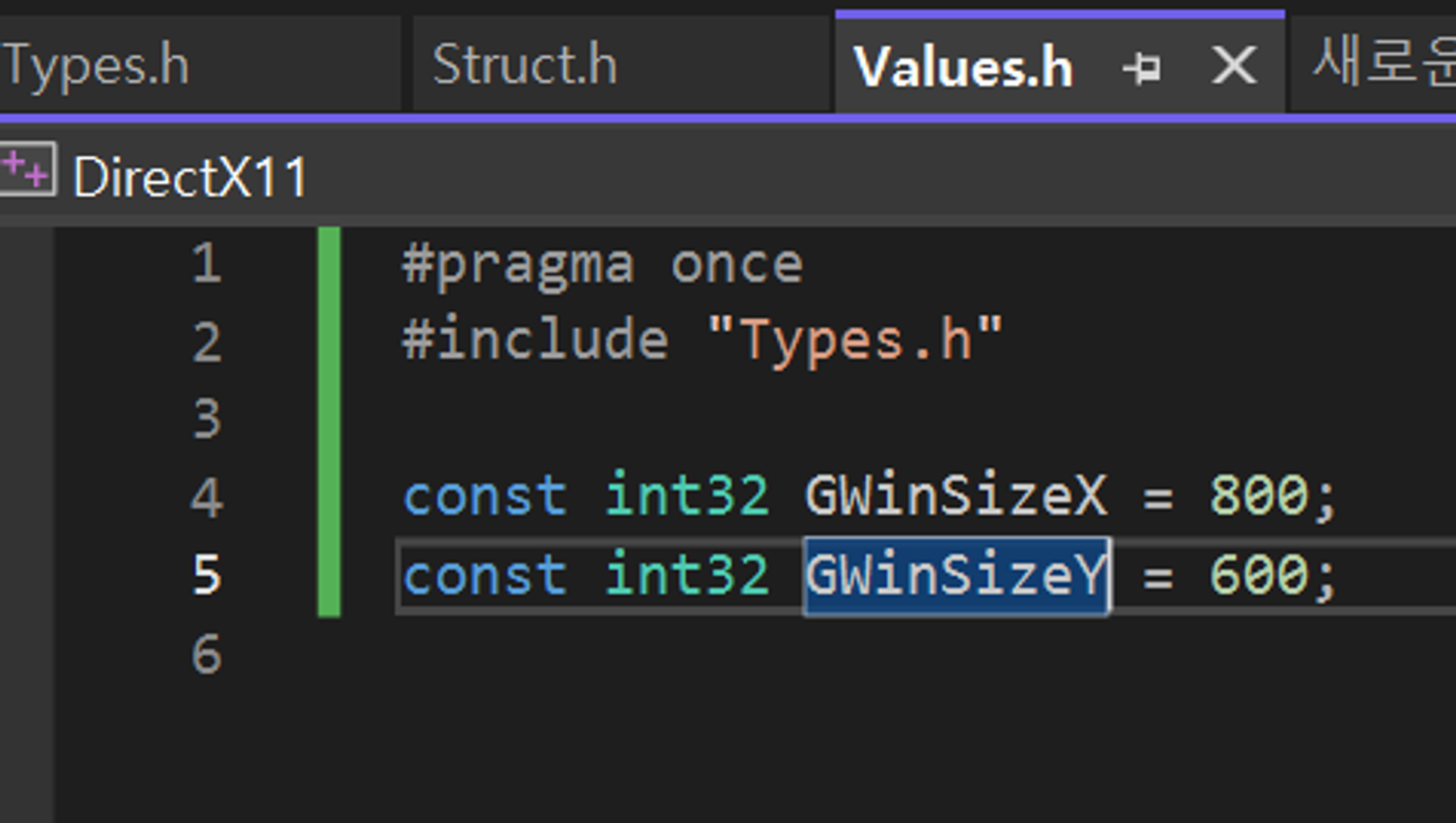 2. Values.h : 고정적으로 사용할 값을 넣어놓는다.