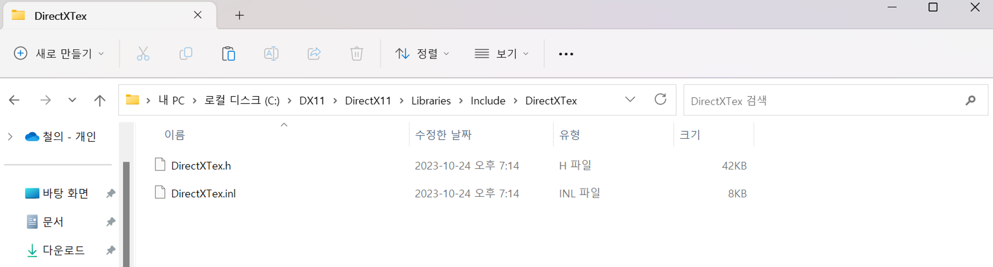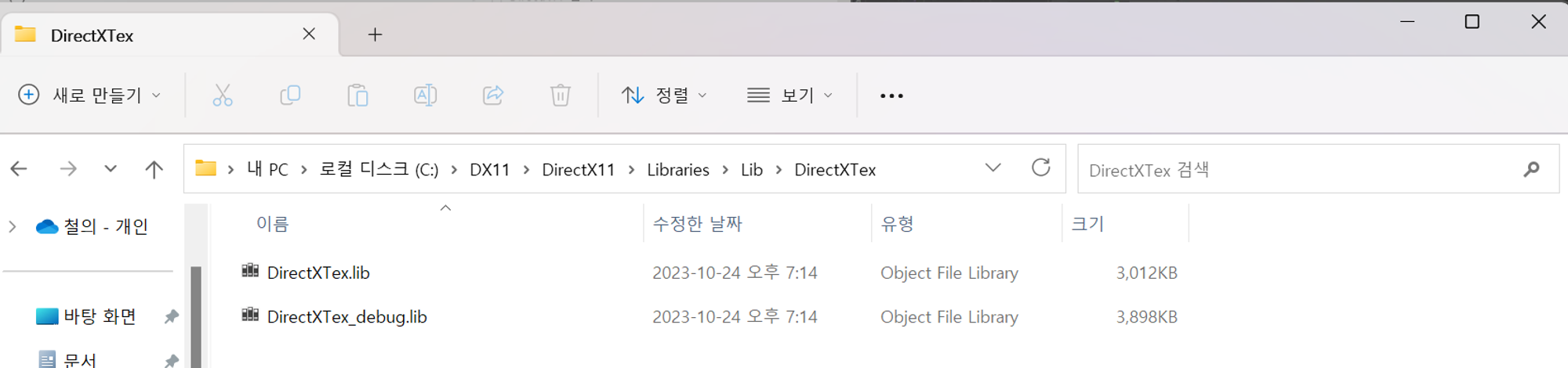 - DirectXTex 를 Git 을 통해 다운 받아서 빌드 후 추가하거나