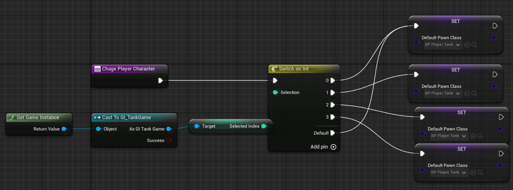 메인게임모드에서 선택한 탱크를 디폴트 폰으로 설정한다.