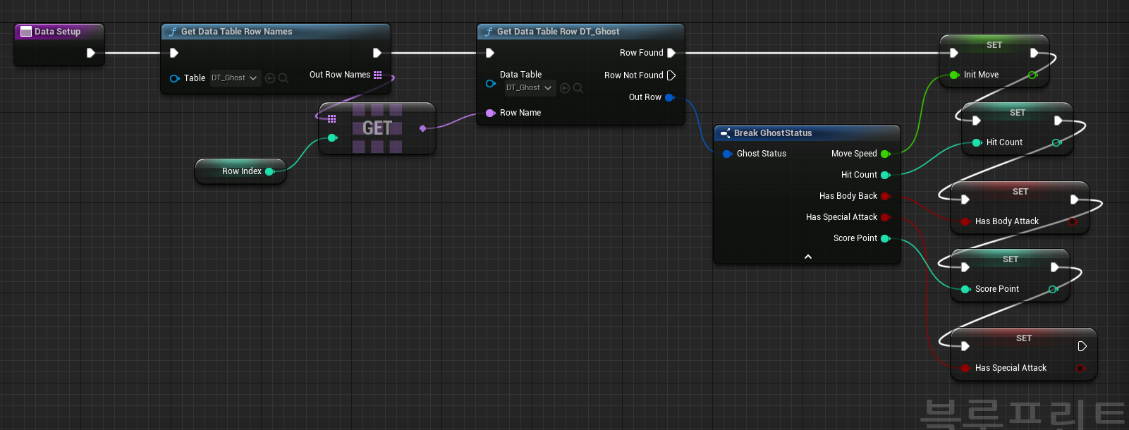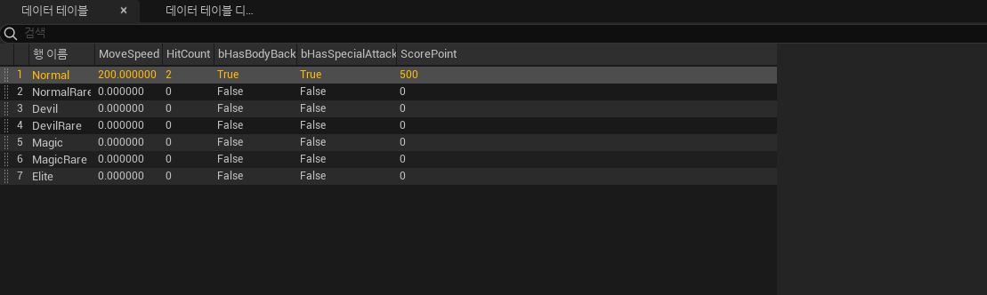 이제 각각의 고스트들의 스탯을 데이터 테이블에서 정해준다.