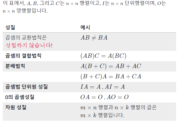 중요한 점은 곱셈의 교환법칙이 성립하지 않는다는 것이다!