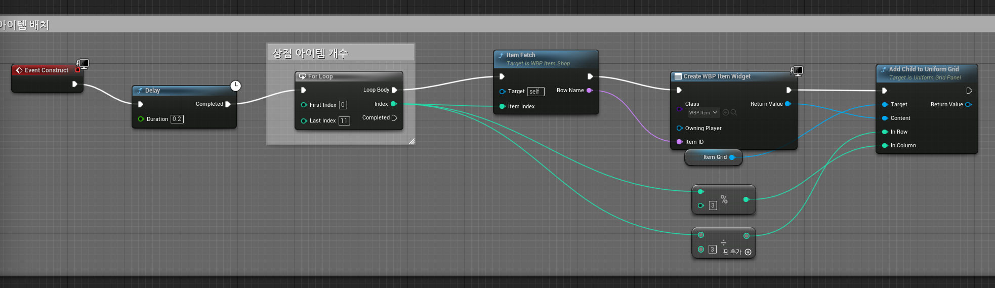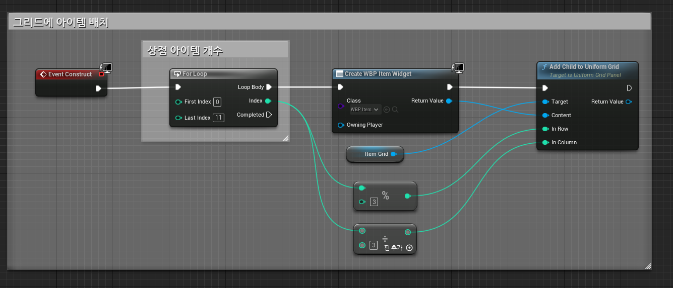 현재 인스턴스가 가지고 있는 아이템 Name 들을 통해 Shop 위젯에서 Item 생성해서 그리드에 넣기