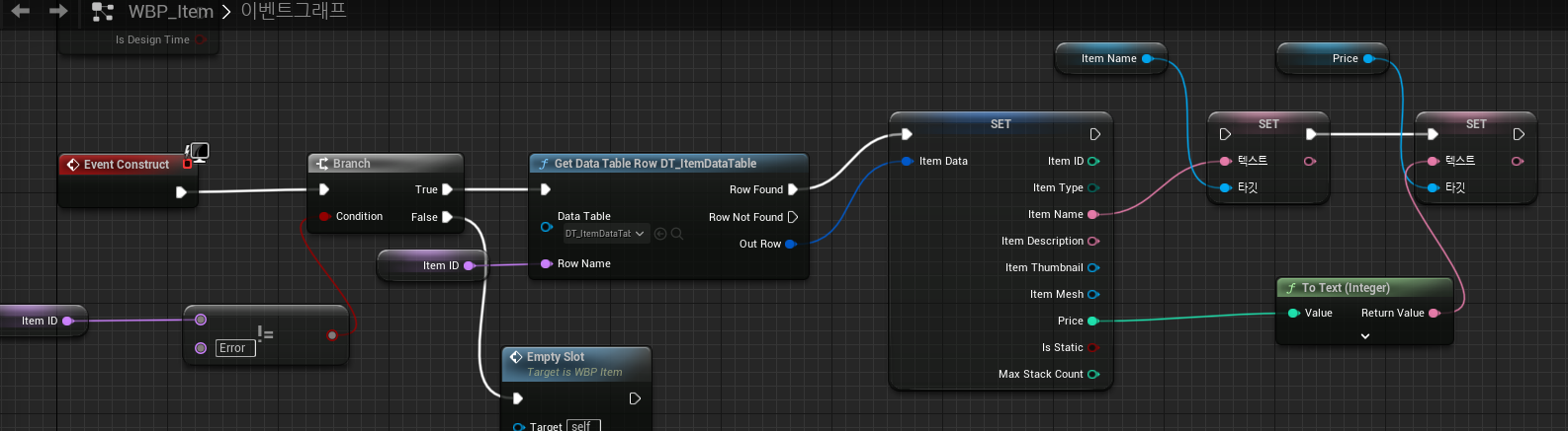 아이템이 생성될 때 FName 이 없을경우 예) NPc 가 아이템을 2개 가지고 있는데 상점 메뉴 슬롯이 10개 면 8개 슬롯은 아이템이 존재는 하나 이름이 없는 빈 아이템인것