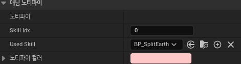AnimNotify 를 사용해 특정 프레임에서 SkillActor 를 사용하도록 만들었다.