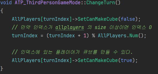 ChangeTurn 이 실행되는데 이 함수를 게임모드가 가지고 있다.