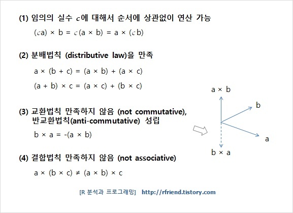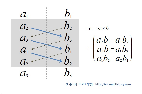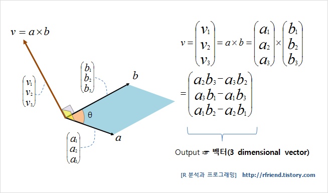 R (7) 벡터의 곱 - [2] 벡터곱 (cross product, vector product), 외적(outer product)
